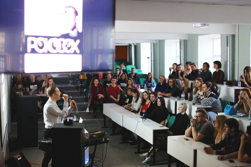 Solo performance and live dialogue with musician. POKO COX presented a new compact concert setup, which is a result of interaction with a new instrument that is new for him. It allows performing solo without musicians using only a couple of automated instruments. He told about importance of experience of cooperation with other musicians and designers, process of creation of some songs of his, story of their creation, and importance of being flexible in the creativity. |